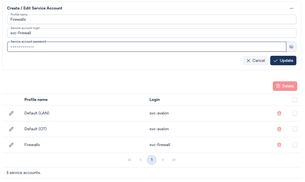 Avalon utilise les service accounts pour se connecter aux équipements réseau et exécuter des opérations (services, data gathering, autodiscovery, etc.).