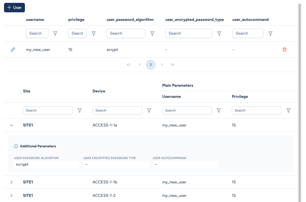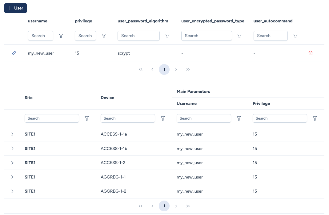 Cette section vous permet de gérer les comptes utilisateurs locaux de vos équipements. Ces comptes sont typiquement utilisés comme identifiants de secours (au cas où l'authentification centralisée comme RADIUS serait inaccessible) ou pour des services automatisés spécifiques.