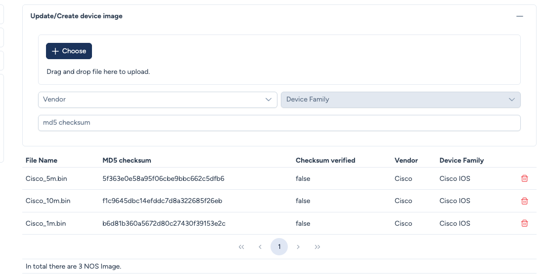 La section Device Images centralise les binaires des systèmes d'exploitation réseau (NOS - Network Operating System).