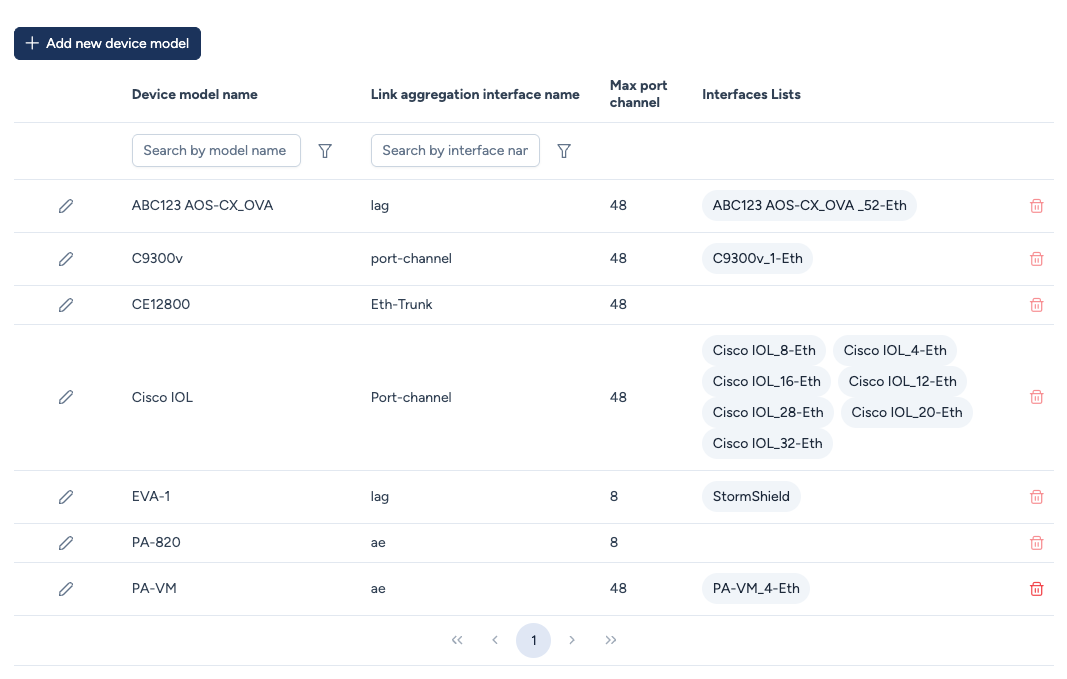 Pour ajouter un équipement statique à la carte ou préparer un déploiement ZTP, son Modèle d'équipement doit être disponible. Assurez-vous d'associer une Liste d'interfaces correcte pour pouvoir connecter physiquement le nouvel équipement sur la carte.