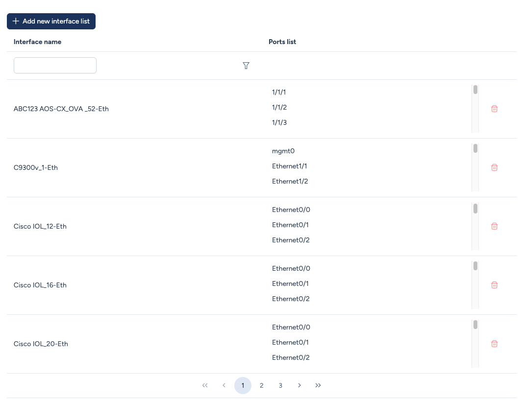 Lors de la création d'une liste, vous définissez une ou plusieurs Sous-listes pour couvrir toutes les interfaces de l'équipement.