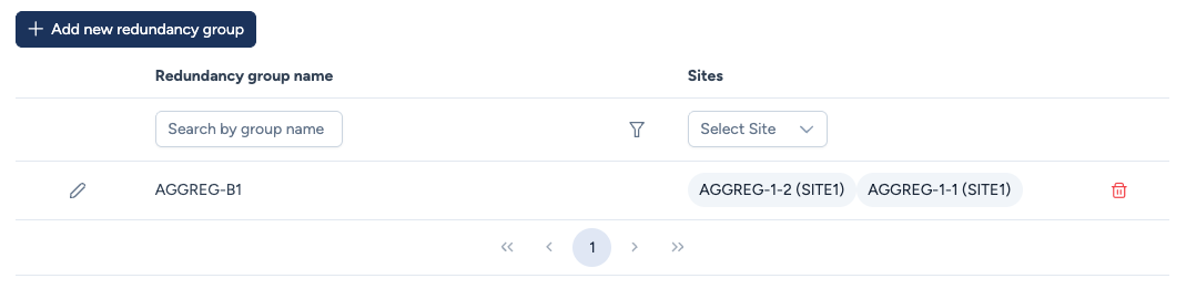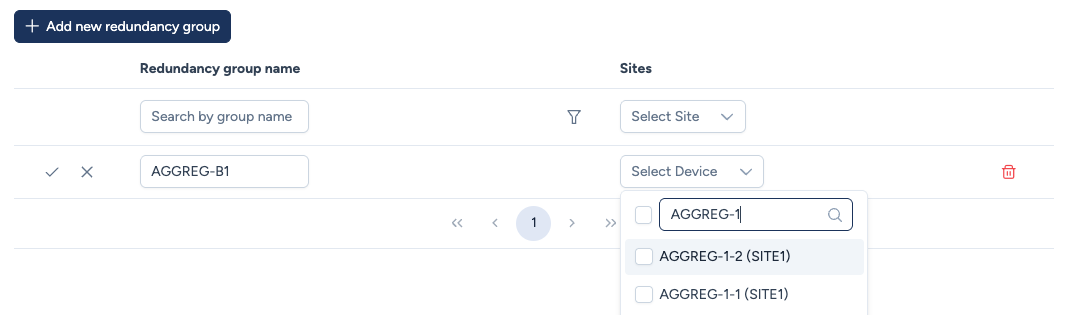 - + Add new redundancy group: Vous pouvez définir de nouveaux groupes en cliquant sur