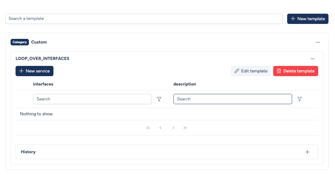 - History : Vous pouvez consulter l'historique pour voir quels paramètres ont été utilisés pour chaque équipement lors des déploiements précédents.