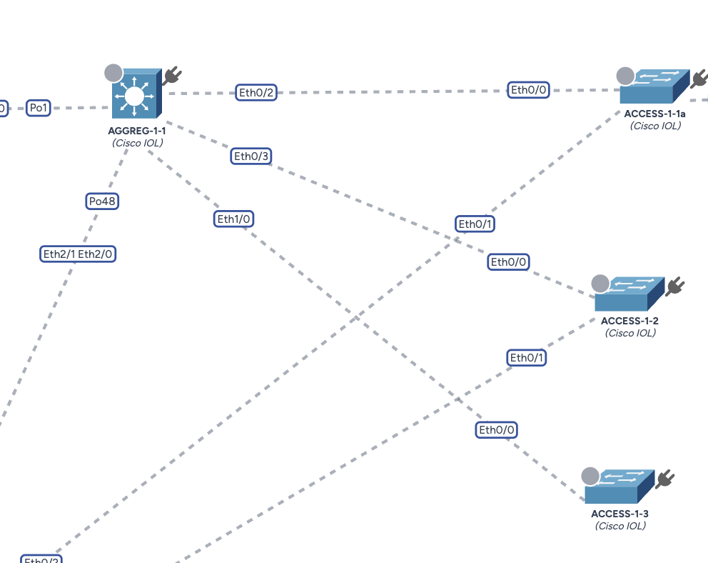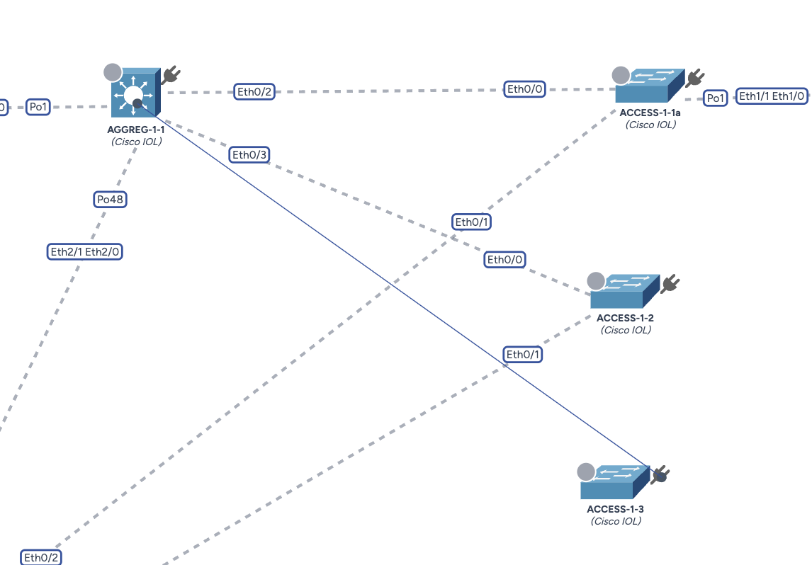 Dans cet exemple, nous avons positionné le nouveau commutateur ACCESS-1-3 dans la zone "B1" et nous voulons le relier au commutateur de distribution AGGREG-1-1.