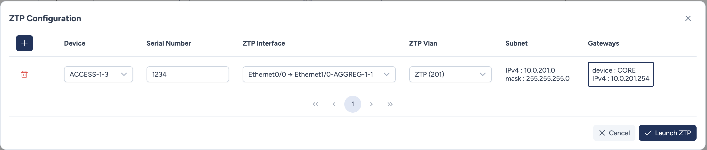 - ZTP Vlan : Sélectionnez le segment réseau utilisé pour le provisionnement.