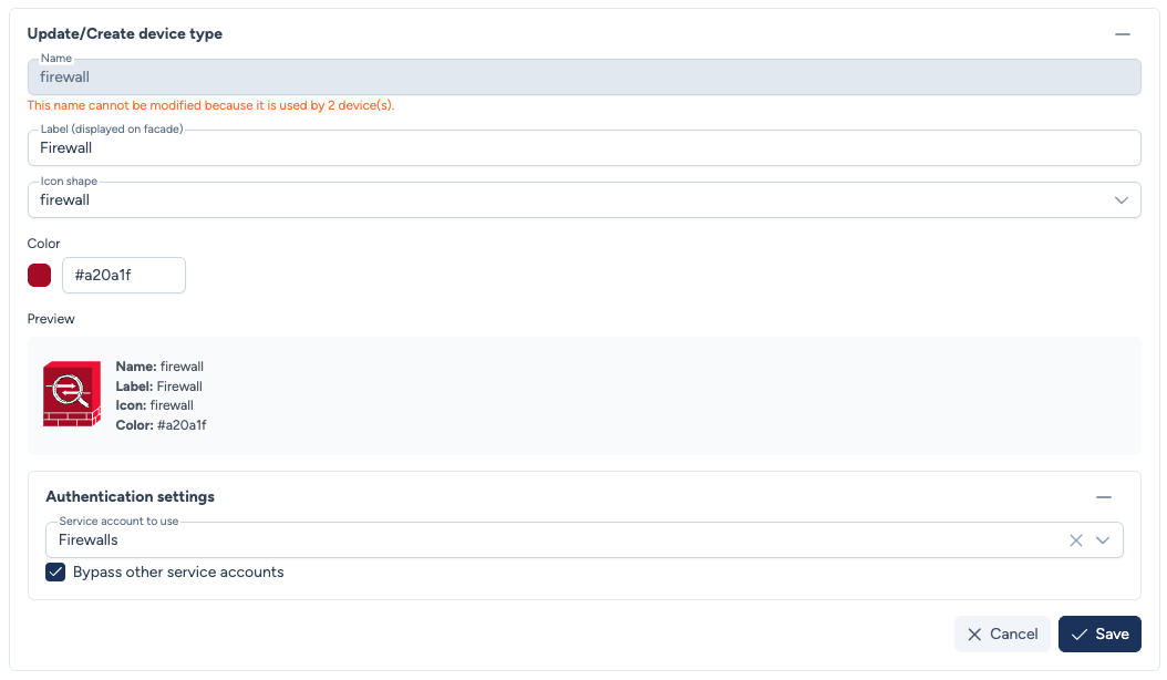 WiFi Guest,Firewall). - Icon shape: The shape of the icon used to represent this device type on the map.