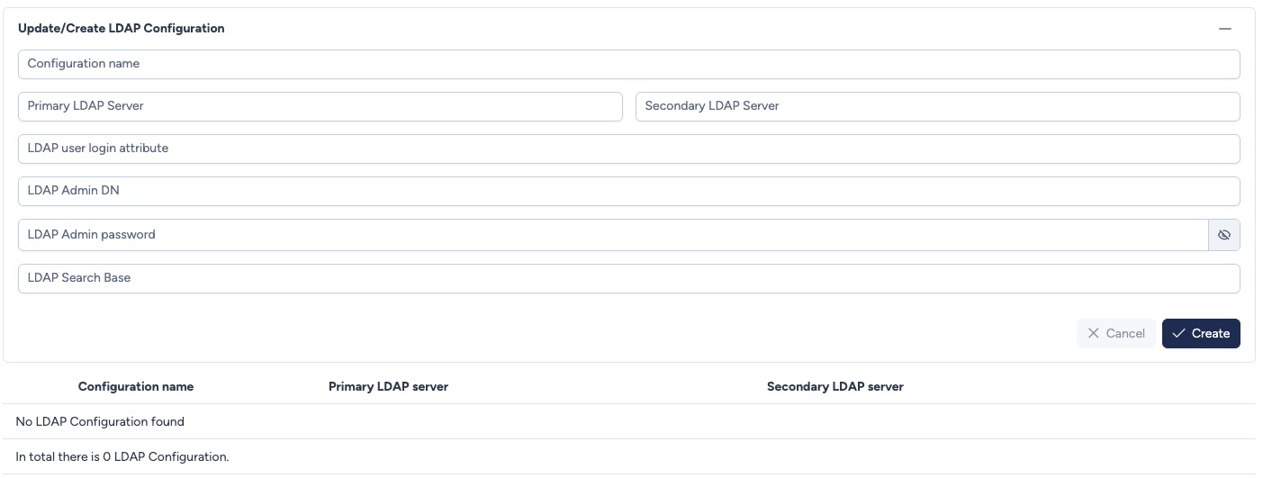 - Create: Validates and saves the new LDAP configuration.