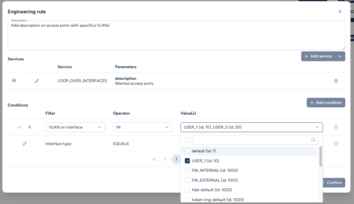 Engineering Rules represent the highest level of network automation in Avalon. They enable deployments conditioned by advanced filters, ensuring that configurations are applied only to devices or interfaces that meet specific technical criteria.