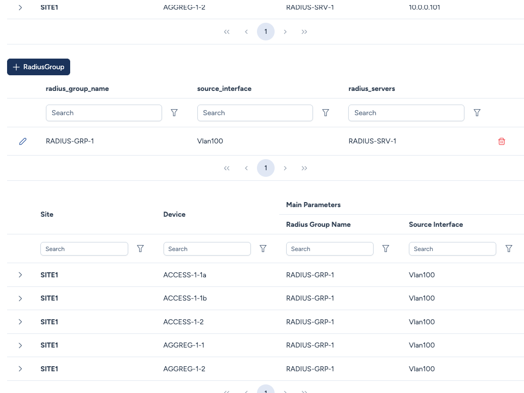 Vlan100orLoopback0). - Radius Servers: A dropdown menu to choose which RADIUS Servers belong to this group.