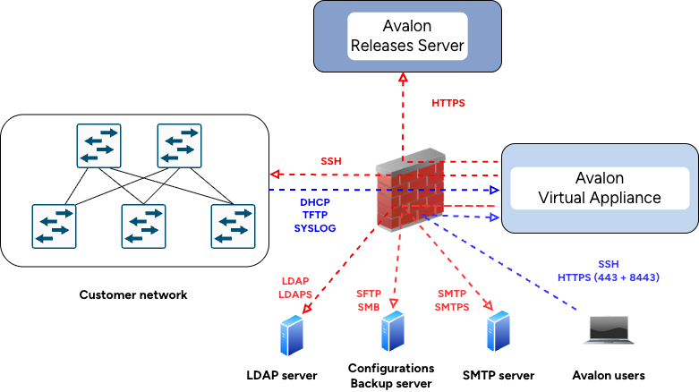 | TCP | avalon_production | Customer's configuration storage server | 22, 445 | No | Automatic transfer of configuration backups to an internal server |