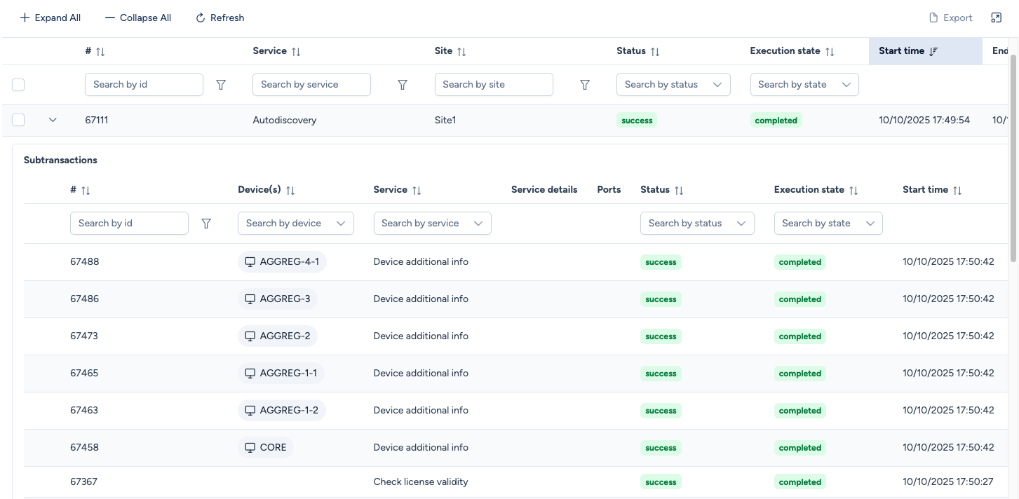Chaque transaction comprend une ou plusieurs sous-transactions. Dans certains cas, vous verrez des messages associés à une sous-transaction, qui fournissent des informations détaillées sur l'exécution d'une tâche.